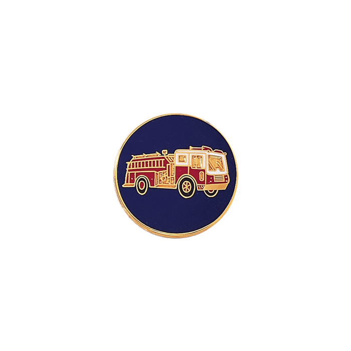 Handsome 15/16” fire truck seal. This versatile piece can be used as a lapel pin, or use it as a stunning center seal on your badge. The background can be the color of your choice. Minimum order quantity is 2.
