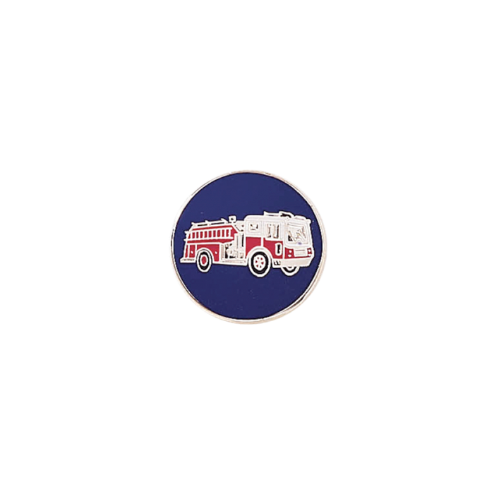Handsome 11/16” fire truck seal. This versatile piece can be used as a lapel pin, or use it as a stunning center seal on your badge. The background can be the color of your choice. Minimum order quantity is 2.