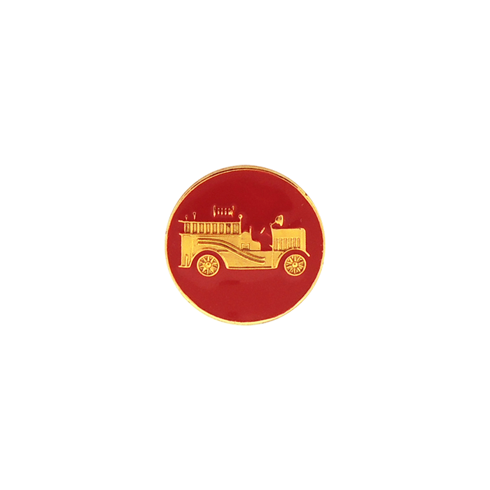 This fire seal transitions nicely to your collar as a lapel pin. The pumper truck is raised with an enamel background in the color of your choice. Minimum order quantity is 2.