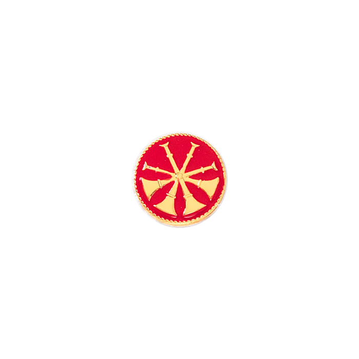 Handsome four crossed raised horns with a rope edge. This versatile piece can be used as a lapel pin by adding two clutch back nail attachments, or use it as a stunning center seal on your badge. The background can be the flowed enamel color or your choice. Four crossed horns typically denotes the fire rank of Deputy Chief / Commissioner. Also available in 15/16" A6969, 5/8" A6970, 1/2" A6971, and 5/16" A6972. Minimum order quantity is 2.