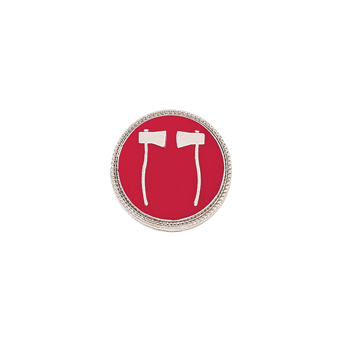 This double axe seal is a versatile piece that can be used as a lapel pin, or use it as a stunning center seal on your badge. The fire seal features two vertical raised axes facing each other. It comes in the flowed enamel color of your choice. Also available as 11/16" style A8932. Minimum order quantity is 2.