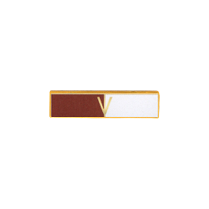 Two Section Veterans commendation bar that can take the colors of your choice, with a V in the center. A great recognition for those who have fought for our freedoms. The wording / text is in the die and cannot be changed. For the larger 3/8" height bar, use model A12701.