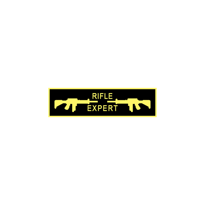 Rifle Expert one color commendation bar with rifles on each side of lettering. Rifles and lettering are built into the die and cannot be changed. For "Rifle Marksman", use model A12931.