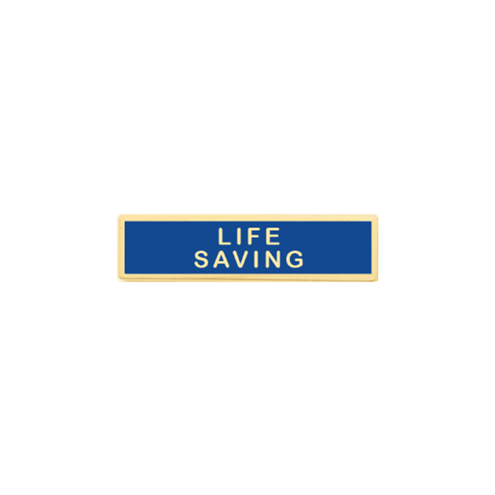 One section bar with the words Life Saving in the die. The bar helps to recognize a selfless act with the saving of a human life. This bar is available with Life Saving on one line. The wording / text is in the die and cannot be changed. See model A4616-BC.