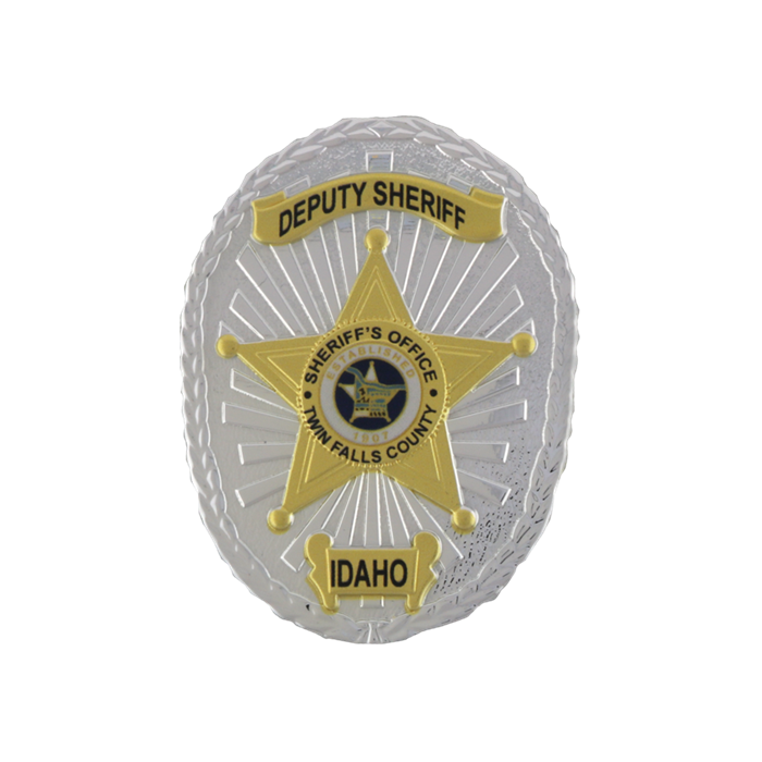 Oval FlexBadge with five-point star in the center similar to metal badge model B1674-SA.