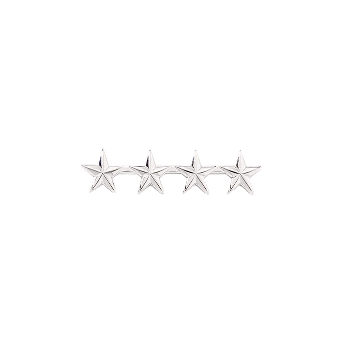 In Stock Four (4) 1/2" Smooth Stars on a bar. Enhance your uniform with four 1/2" star pins! Sold In Pairs. Minimum order quantity 2 pairs. Available in gold or silver with clutch back attachments. For Three (3) stars, see model J102. For Two (2) stars, see model J100. For One (1) star, see model J98. For more options and features, see model A3731 or A4887.