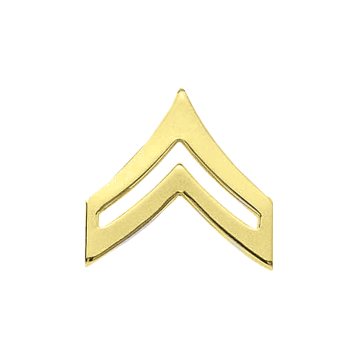 Military Corporal Chevron. Sold In Pairs. Available in gold or silver with clutch back attachment(s).