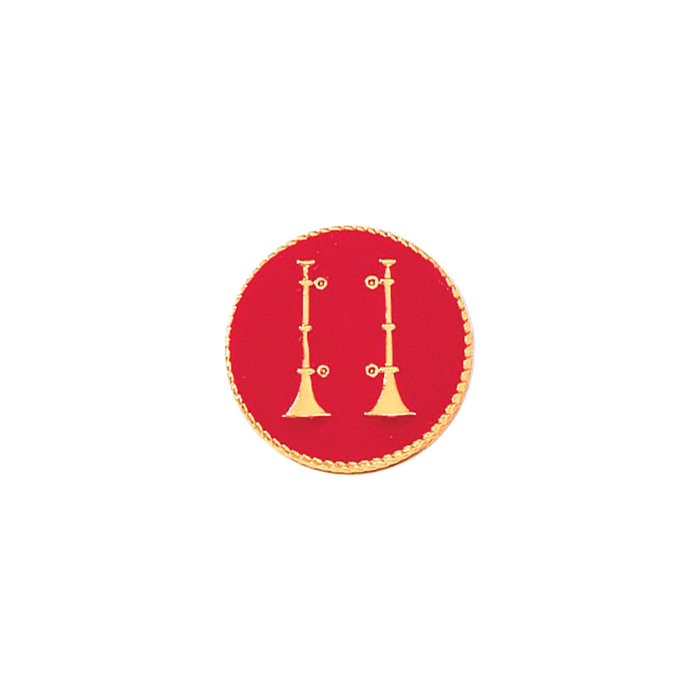 Blackinton J192 Two Vertical Bugles w/ Red Background - GOLD (Pair)