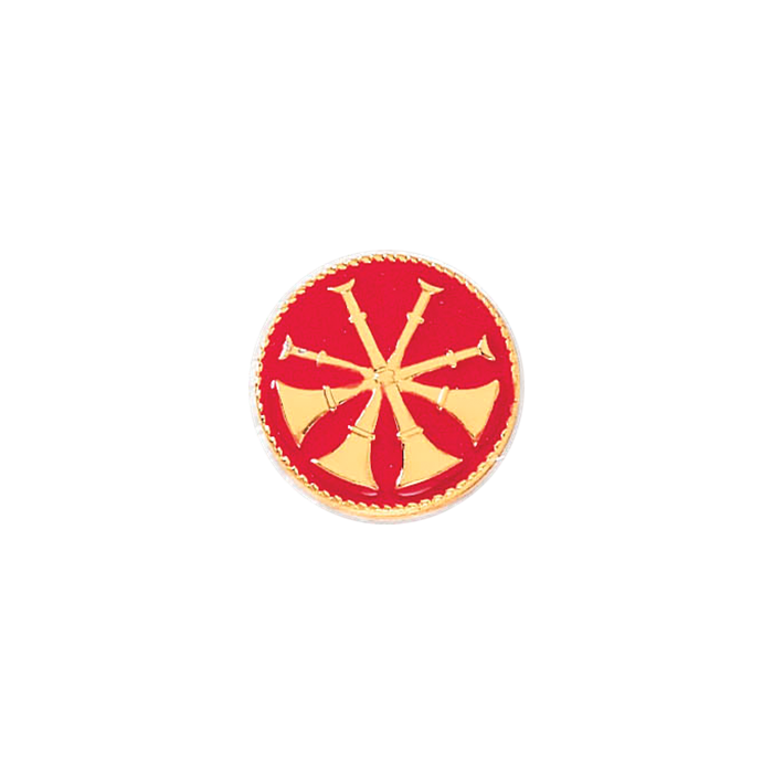 Blackinton J197 Four Crossed Bugles on Red Background - GOLD (Pair)