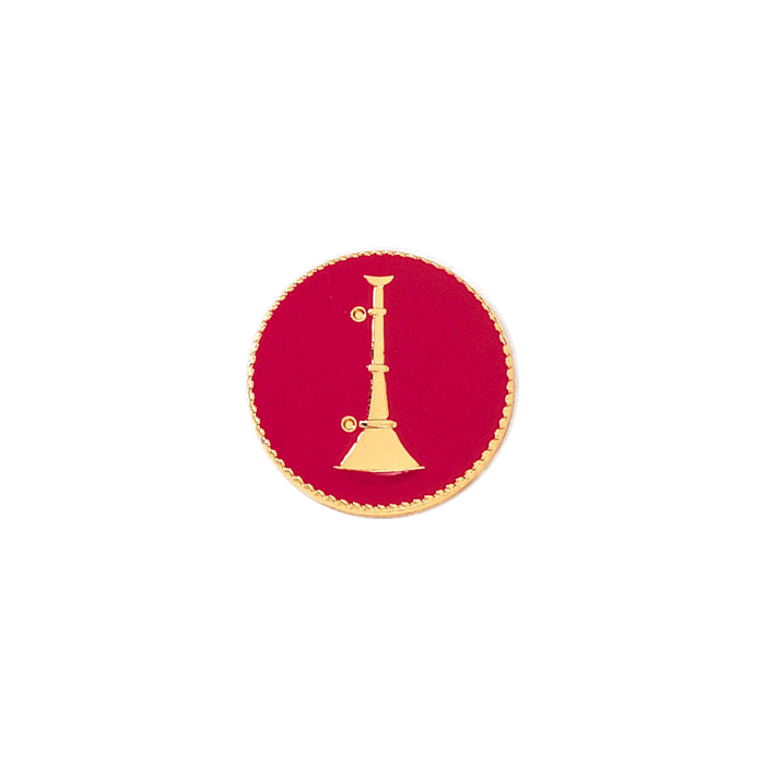 One vertical horn with a red enamel background with a decorative rope border. A single bugle typically denotes the fire rank of Lieutenant. Sold In Pairs.