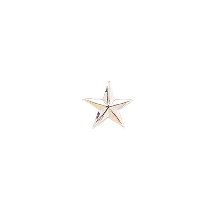 One Smooth Star. Enhance your uniform with this 1/2" star pin! Sold In Pairs. Available in gold or silver with clutch back attachments. Available in 1" (J99) and 3/16" (J114). For two stars on a bar, see model J100. For three, see model J102. For four, see model J104. For more options and features, see model A4887.