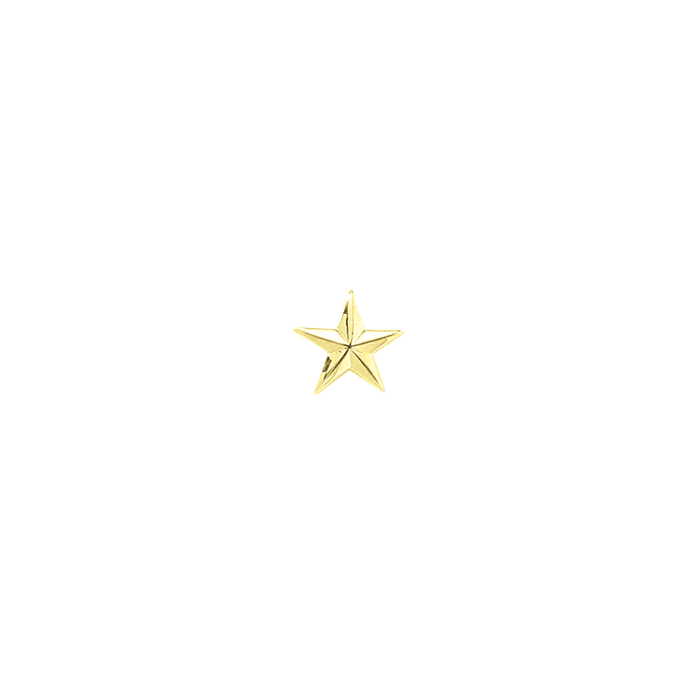 One Smooth Star. Enhance your uniform with this 1/2" star pin! Sold In Pairs. Available in gold or silver with clutch back attachments. Available in 1" (J99) and 3/16" (J114). For two stars on a bar, see model J100. For three, see model J102. For four, see model J104. For more options and features, see model A4887.