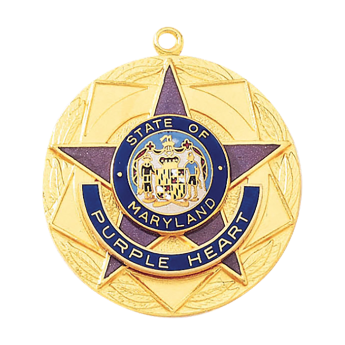 Exquisite circular medal with a five point star in the center. This unique medal is often used as a purple heart medal. The star can take the enamel color of your choice.
