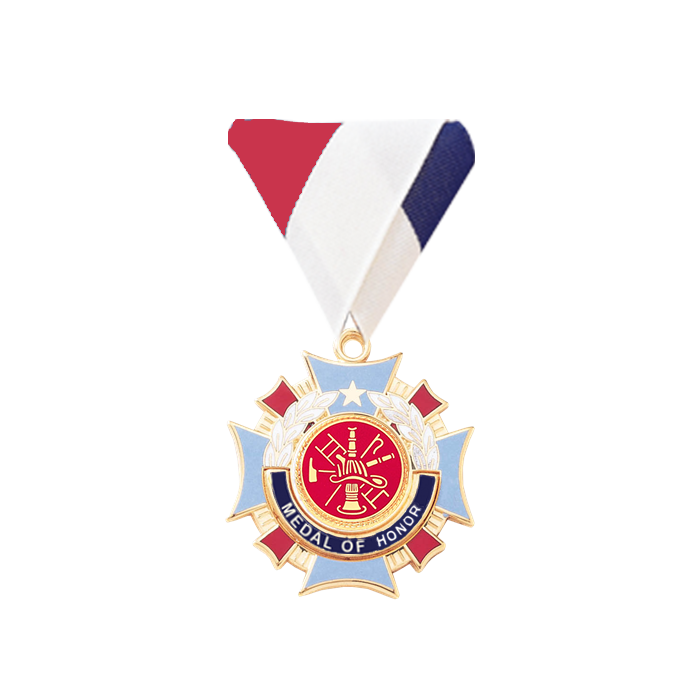 Recognize the heroism and service of the men and women in your department with this stunning medal. The medal can be customized with interchangeable panels and 11/16” seals. All our medals are provided in a rich, dark blue velour case at no additional cost, matching commendation bars are sold separately.