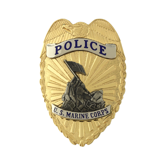 US Marine Corps Police Badge. Available with or without a optional B900 number panel at the bottom.
