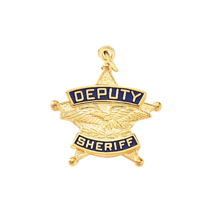 Exquisite deputy sheriff charm that can have a loop added to it so you can use this piece as a necklace. Available as a lapel pin (A3271) , Tie Tack (A3271-TT) or on a tie bar (A3271-TC). The words Deputy and Sheriff are in the die and can not be changed.