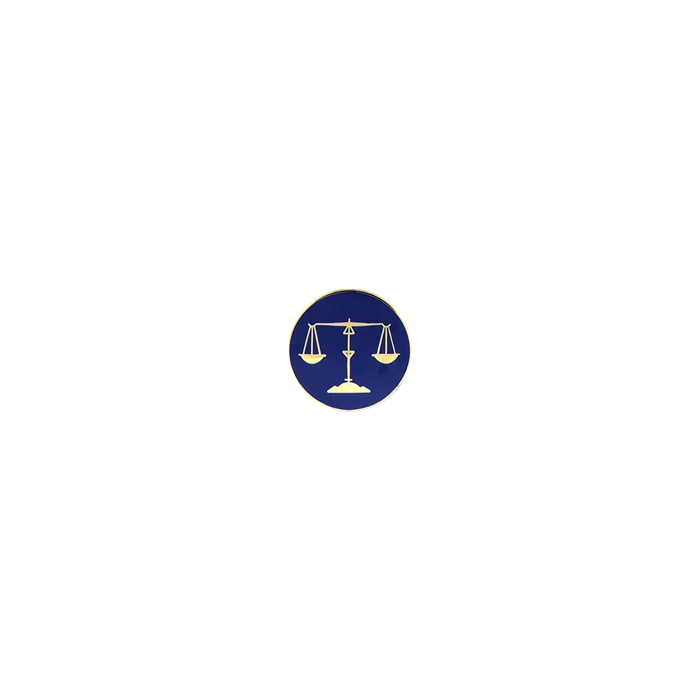 The scales of justice is a versatile piece that can be used as a lapel pin, or use it as a stunning center seal on your badge. The background can be the enamel color of your choice. Also available as 15/16" style A3547 and 1/2" style A3981. Minimum order quantity is 2.