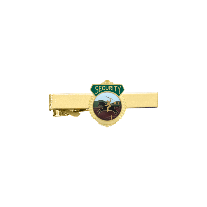 Exquisite security tie bar which can take the enamel color of your choice behind the letters, and any 1/2" seal. The bottom panel can have up to 9 engraved characters. Also available as a Tie Tac (A4002-ATT).