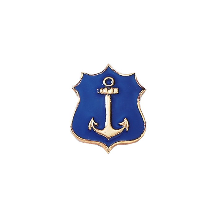Handsome 3/4” shield with an anchor. This beautiful seal can be used as a lapel pin by adding two clutch back nail attachments (Quantity 2 Style# F11), or use it as a stunning center seal on your badge. The background can be the enamel color or your choice. Minimum order quantity is 2.