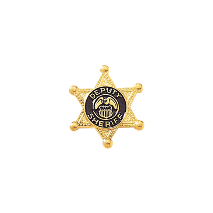 This is a small but finely-detailed six-point star badge with balled tips that also features a black center and the embedded lettering DEPUTY SHERIFF. This exquisite badge makes a great tie tac or lapel pin.