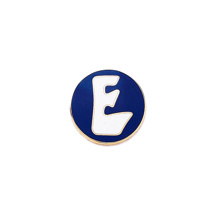 The E is a versatile piece that can be used as a lapel pin, or use it as a stunning center seal on your badge. The E and background can be the enamel color of your choice. Also available as 11/16" style A7161 and 1/2" style A7162. Minimum order quantity is 2.