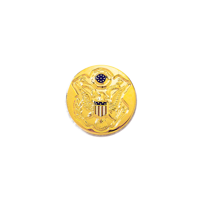 Handsome 15/16” U.S. Coat of Arms circular seal. This versatile piece can be used as a lapel pin by adding two clutch back nail attachments (Quantity 2 Style# F9), or use it as a stunning center seal on your badge. This is only available in the colors shown. Minimum order quantity is 2.