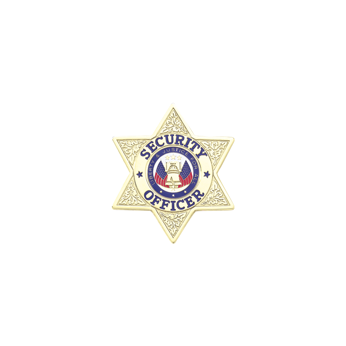 This finely-detailed six-point star badge includes embedded lettering for SECURITY at top and OFFICER at bottom, plus our seal of liberty and justice for all! Lettering and Seal are built into the badge and cannot be changed.