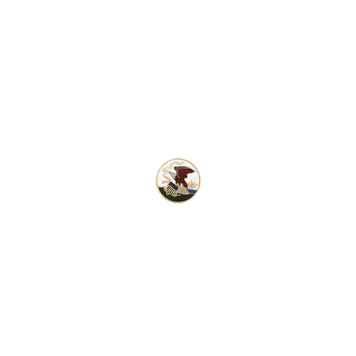 Handsome 1/2” full color seal with proud eagle and a US Flag shield. This is only available in the colors shown. This versatile piece can be used as a lapel pin by adding two clutch back nail attachments (Quantity 2 Style# F9), or use it as a stunning center seal on your badge. Also available as 15/16" style A4517 and 11/16" style A8778. Minimum order quantity is 2.