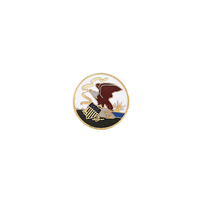Handsome 11/16” full color seal with proud eagle and a US Flag shield. This is only available in the colors shown. This versatile piece can be used as a lapel pin by adding two clutch back nail attachments (Quantity 2 Style# F9), or use it as a stunning center seal on your badge. Also available as 15/16" style A4517 and 1/2" style A8777. Minimum order quantity is 2.
