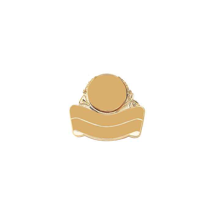 This unique pin can take an applied seal and has two areas where you can engrave the lettering of your choice.