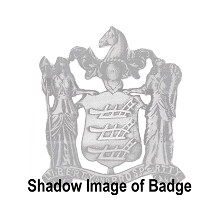 This intricate New Jersey badge resembles the state seal, and features the lettering LIBERTY AND PROSPERITY along the bottom.