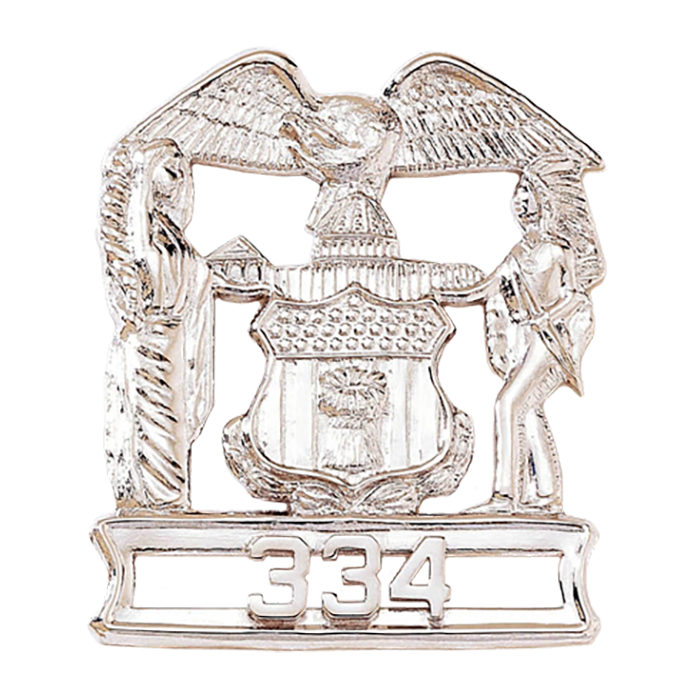 This intricately-detailed badge features a smooth bottom rectangular panel for rank titles or numbers! Available either with cut out numbers or letters or with a solid, lettered panel. This badge includes the Illinois Coat of Arms plus a large open bottom area for applied letters or numbers!