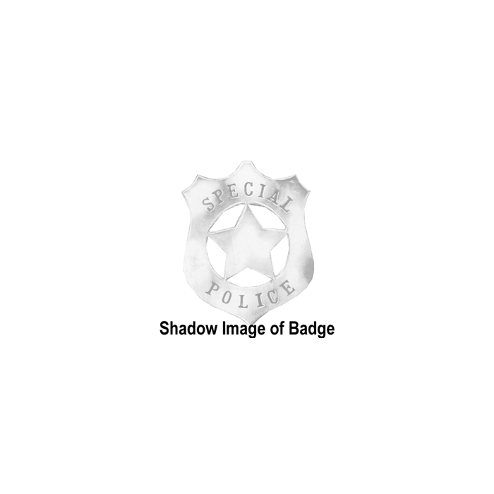 This impressive yet simplistic shield badge features a thick outer area for lettering, a centerpiece of a five-point star, and cut-out-style areas between the star points!