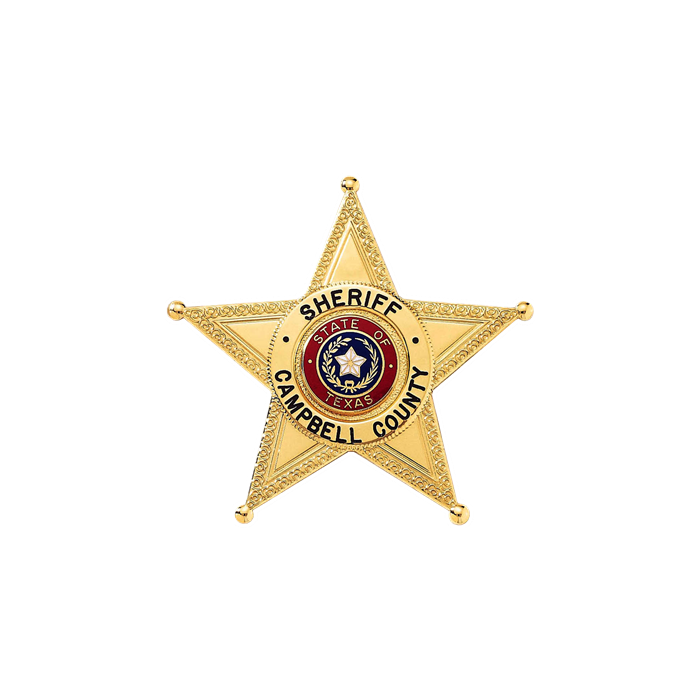Five point star badge with ball points and an intricate design around the edge. Solid Back Badge. If extra panels are needed, use model B2176 or B1768. For a smaller badge, see model B1109.
