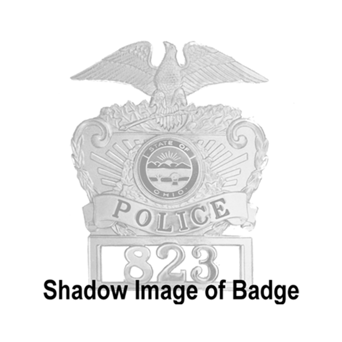 This impressive badge features an upward-facing top eagle, and a large rectangular bottom panel for applying letters or numbers!