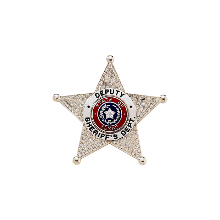 This five-point star badge includes a spacious round center ring as well as balled star point tips! For a larger badge, see model B1280.