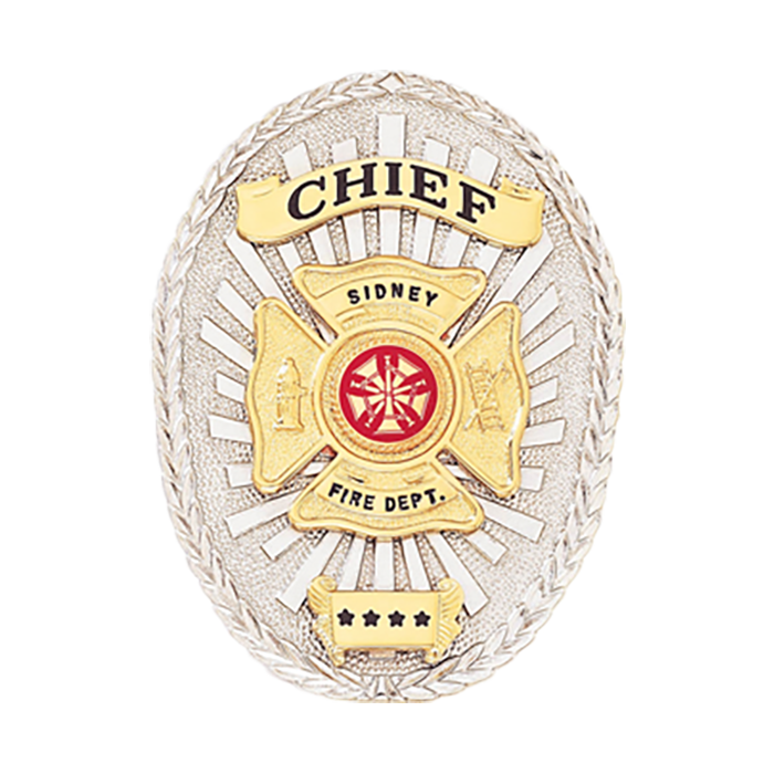 This Oval Badge with Maltese Cross version of the B1674 uses a center Maltese Cross (style # B491)! Solid Back Badge.