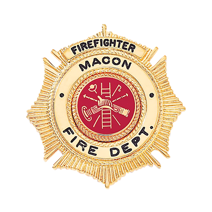 This popular badge includes a sunburst rim inspired by the Maltese Cross!