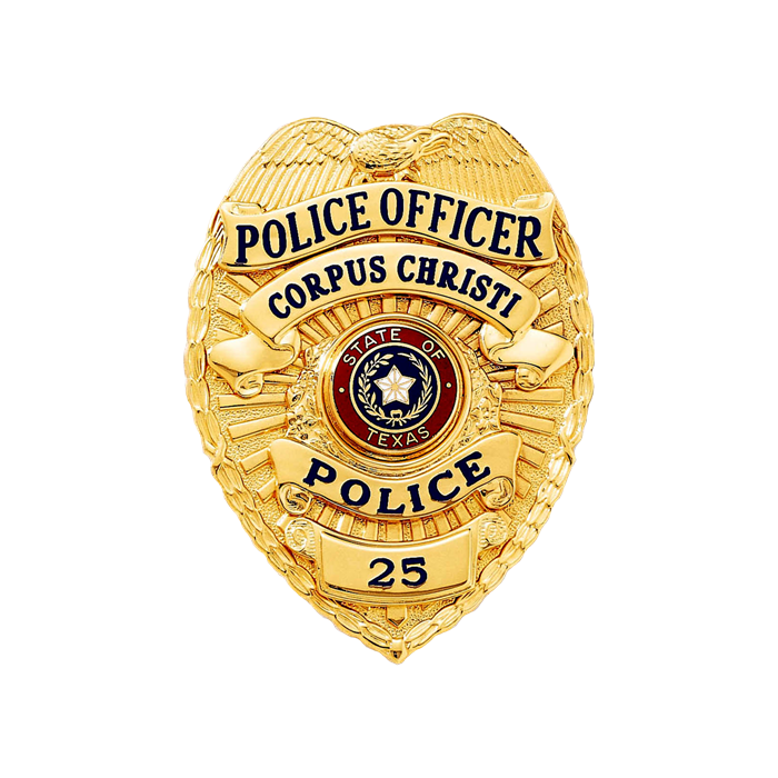Shield badge with an eagle at the top with the eagles head pointing right.