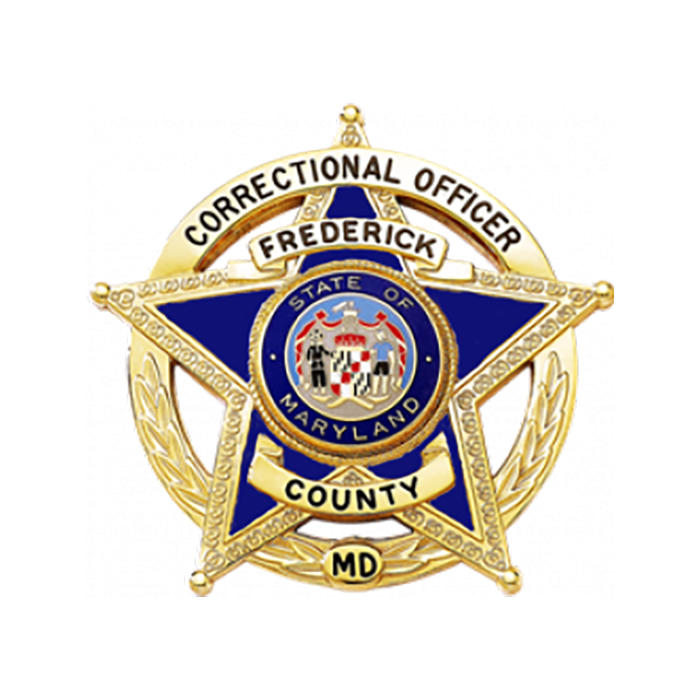 This elegant 5-point star version of the B2438 badge includes enamel coloring in the background and includes a ring around the middle of the star points, allowing for a total of four areas for lettering! Solid Back Badge.