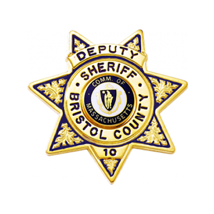 This intricately-designed 7 point star badge includes four areas for lettering! This version also has enamel coloring in the background! If no colored enamel is needed, use model B2467. For a larger badge, see model B448-DE.