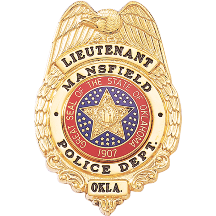 This thoroughly-detailed badge, smaller than the B2555, features an eagle at the top, plus a bold ring for lettering around the centerpiece area!