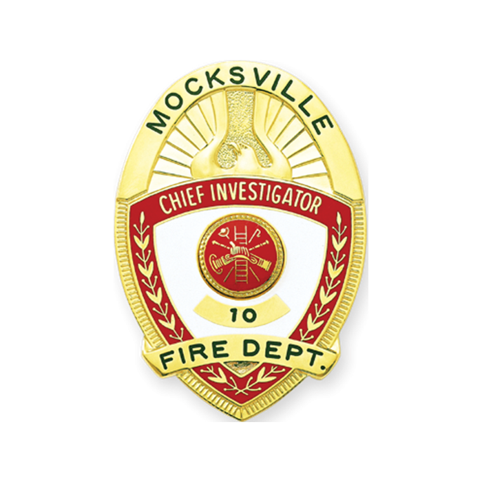 This version of the B1328 allows for greater customization potential! Special reversed enamel panels can be made to drop into this badge. Investigator shown but many standard titles are available.