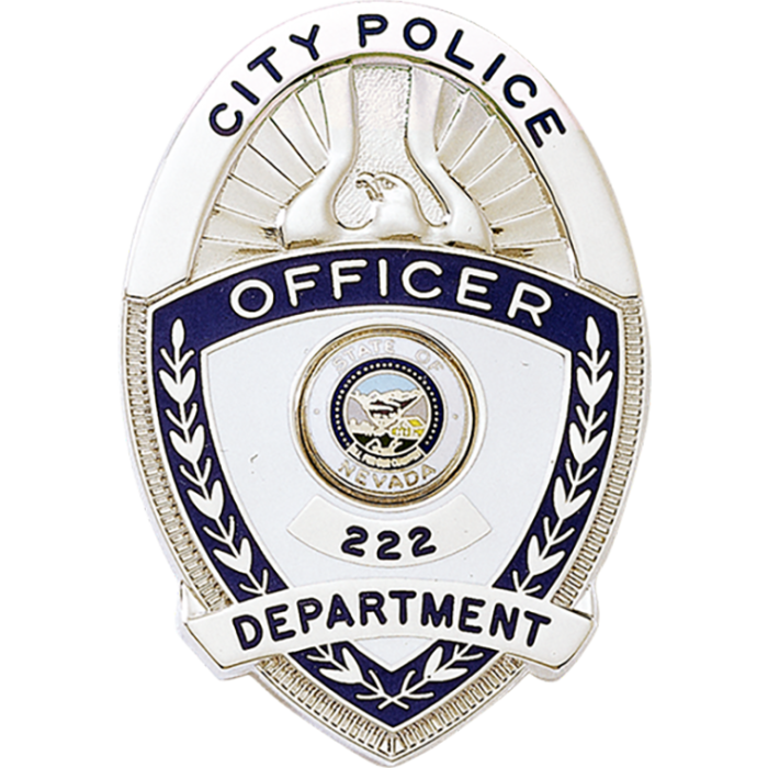 This is a smaller version of the B1687 badge! Special reversed enamel panels can be made to drop into this badge. OFFICER shown but many standard titles are available.