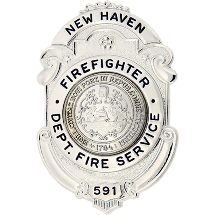 This decorative shield is one of our newer designs capturing old world style. A great shield for fire departments looking for a classic design. For a larger badge use model B3454.
