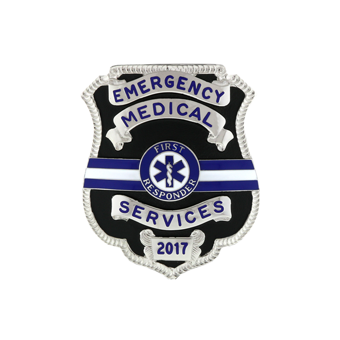 One of our newer badge styles - our Remembrance Badge. This unique badge comes with a black background. You can choose the enamel color you would like in the three lines; i.e., Black, Blue, Black. If you would like this style with an eagle on top order the B3606.