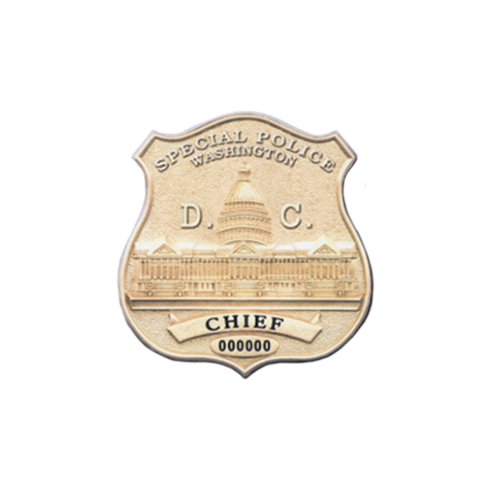 This Special Police Washington D.C. badge has the DC Building in the die. Bottom two lines can be lettered.