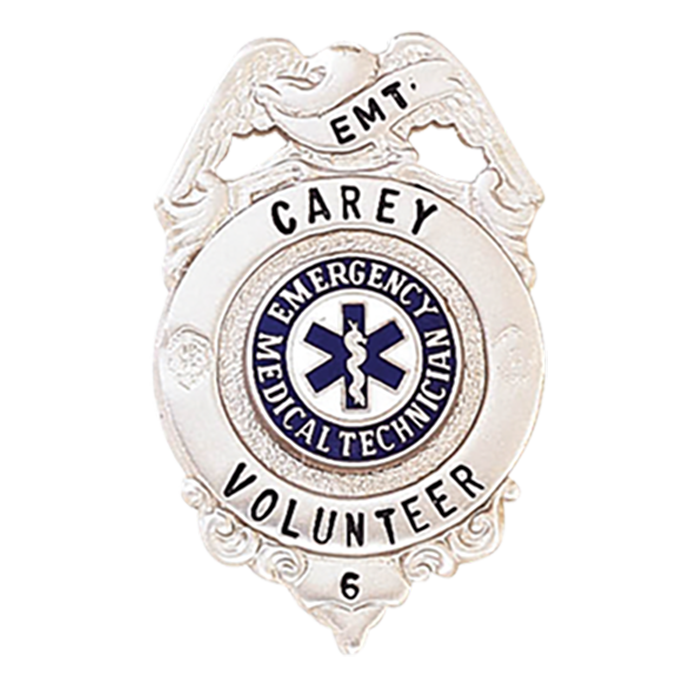 This mini shield badge features old-fashioned styling as well as four areas for lettering! Not available with hard enamel or roman lettering.