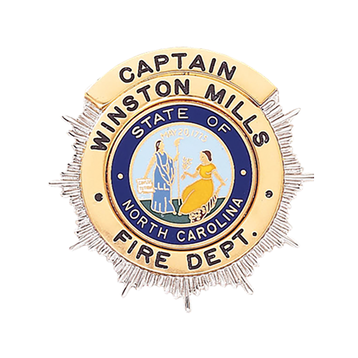 This impressive cap badge offers three areas for lettering and sunburst rays around the edge!