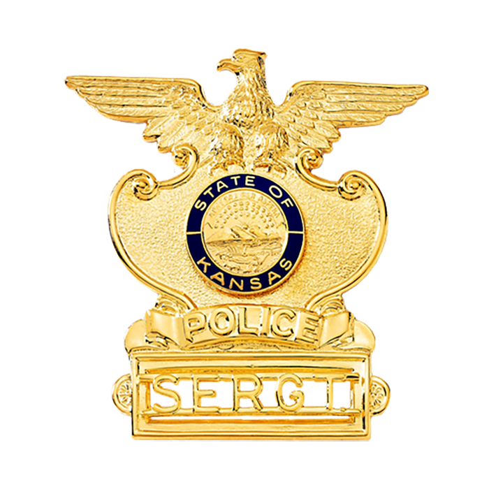 This is a true classic! With a pebbled background, proud eagle at the top, embedded word POLICE, and open bottom area for applied letters or numbers, this one is a beauty! Raised letters Police in die. See style B619-B for badge without POLICE.